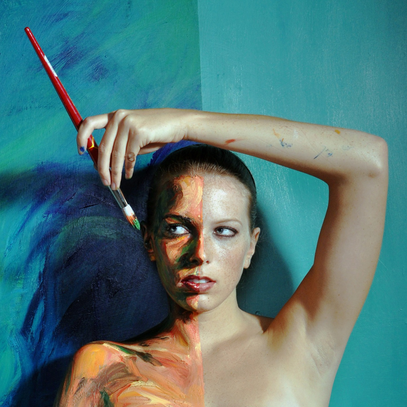Alexa Meade paints on the human body and three-dimensional spaces, creating the illusion that our reality is a two-dimensional painting.