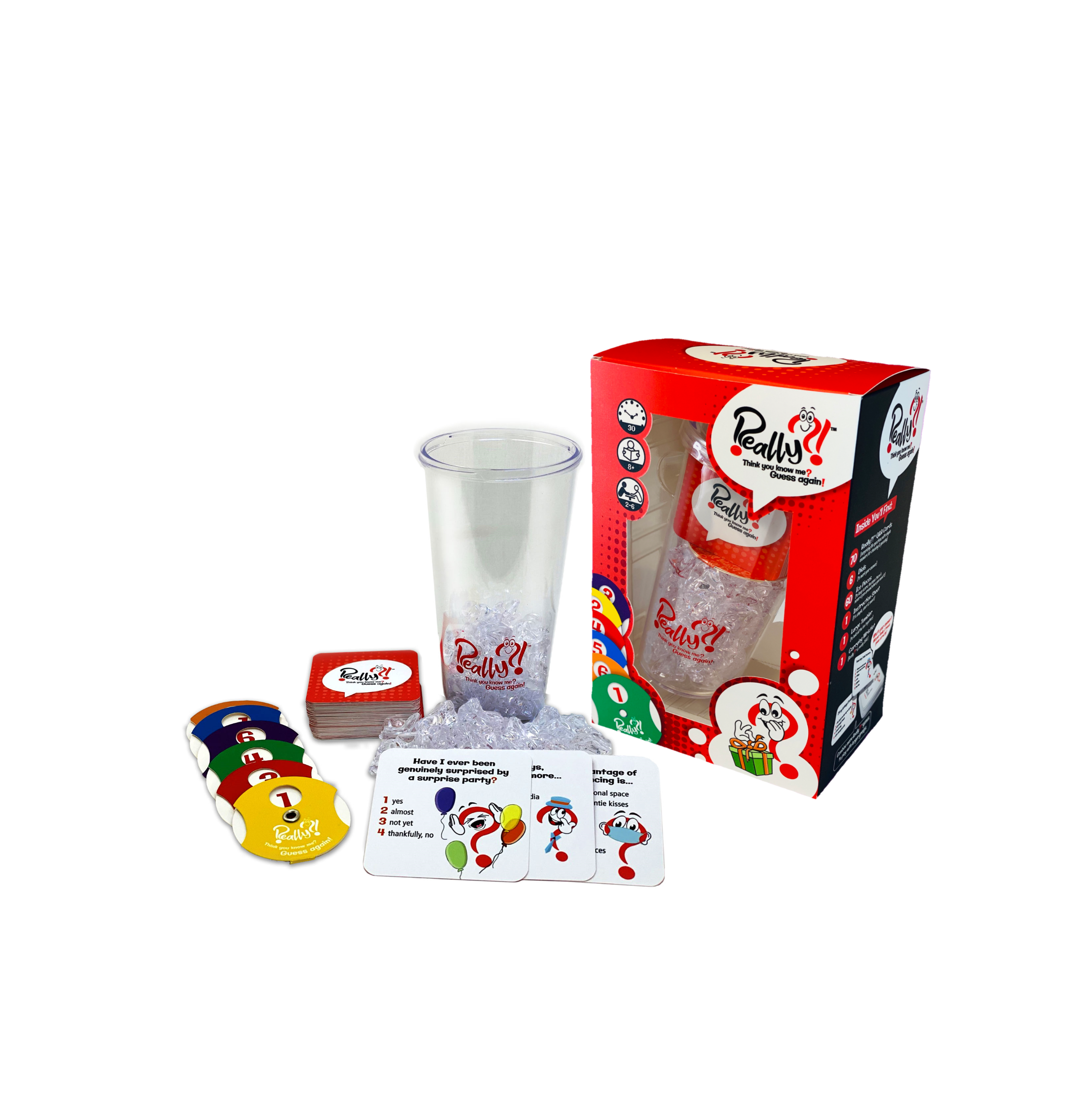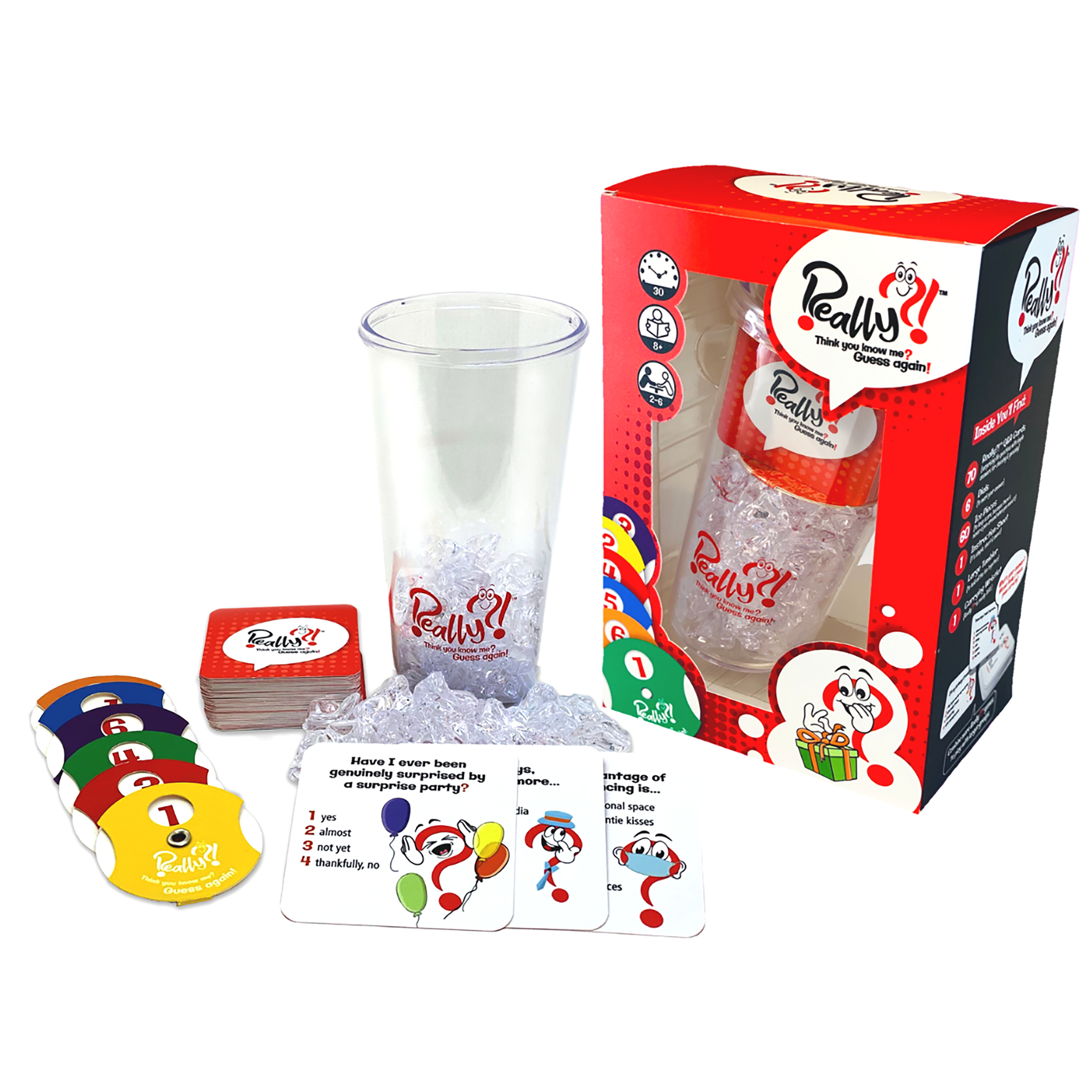 {Really Unique Games for Kids and Adults on Family Game Night} Using your colorful number dial guess the current players answer to the surprising & quirky questions on the conversation starter cards. Play Ice Pieces are included to keep score.