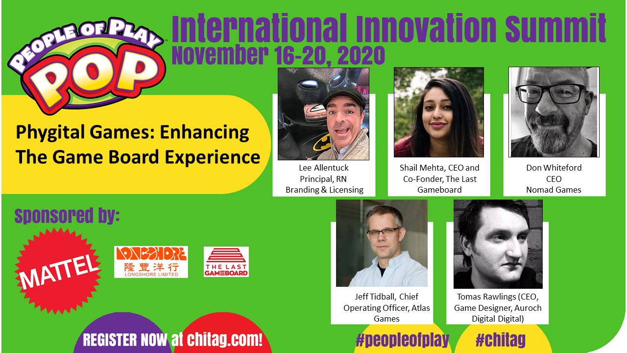 Lee Allentuck hosts leaders in the phygital game space (Jeff Tidball COO of Atlas Games, Don Whiteford CEO of Nomad Game Limited, Tomas Rawlings CEO of Auroch Digital, and Shail Mehta CEO and Co-Found...er of The Last Gameboard) to discuss the evolution and future of social games during the ChiTAG 2020 Conference.Show more